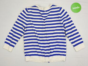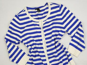 Sweter kardigan H&M BASIC – damski - Model: rozpinany kardigan na guziki - Wzór: poziome paski w kolorze kobaltowym i ecru - Dekolt: okrągły - Rękaw: 3/4 z prążkowanymi mankietami - Dół: ściągacz ...