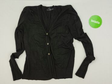 Czarny kardigan damski z długim rękawem, zapinany na guziki, z dekoltem w kształcie litery V. Wykonany jest z prążkowanego materiału, co nadaje mu klasyczny wygląd. Idealnie sprawdzi się jako uzupe...
