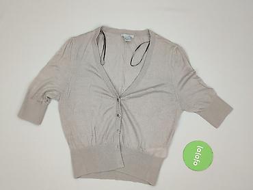 - Krój: krótki kardigan zapinany na guziki, dekolt w serek, mocno szeroki ściągacz w pasie i przy rękawach