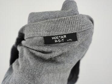 Szary kardigan damski HOSTAR - Rozmiar z metki: L/XL - Fason: zapinany na guziki z przodu - Dekolt: w kształcie litery V z ozdobnym panelem z plisami i aplikacją z kryształków - Rękaw: długi - Dół...