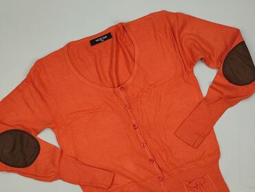 Kardigan damski w kolorze rdzawym, zapinany na guziki, z dekoltem w kształcie litery V. Posiada długie rękawy oraz dwie praktyczne kieszenie z przodu. Idealny do noszenia na co dzień, zapewniający ...