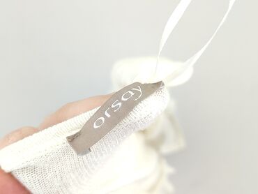 Krótki kardigan damski marki Orsay w kolorze białym. Charakteryzuje się okrągłym dekoltem bez kołnierzyka i zapięciem na guziki z przodu. Rękawy są krótkie i lekko bufiaste, dodając subtelnego urok...