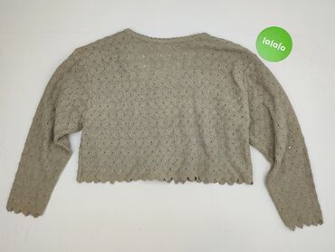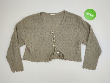 Ażurowy kardigan damski, beżowy. - Krój: długi, otwarty, wiązanie z przodu sznureczkiem - Rękaw: krótki - Wzór: dekoracyjny splot ażurowy na całej powierzchni - Rozmiar z metki: M - Materiał: 100%...