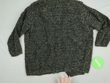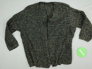 Czarny, lekki kardigan damski bez zapięcia - Fason: otwarty sweter z szerokim, wywijanym kołnierzem/szalowym kołnierzem; długie rękawy, ściągacze przy mankietach i na dole. - Materiał (z metki): 50...