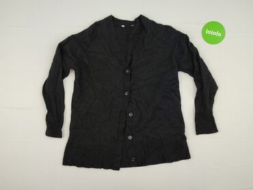 Damski kardigan na guziki - Kolor: czarny z kontrastowymi białymi lamówkami - Fason: prosty, długość do bioder, rękaw długi - Zapięcie: rząd ozdobnych czarnych guzików z przodu - Dekolt: okrągły, ...