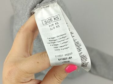 Kardigan damski Orsay, rozmiar S. - Kolor: jasnoszary/melange - Fason: zapinany na guziki, dekolt w serek - Rękawy: długie, delikatnie marszczone przy ramionach - Dzianina: ażurowa faktura z drobn...
