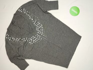 Szary sweter damski z ozdobnymi dżetami – S&S Millenium, rozmiar TU. - Delikatny dzianinowy sweter z okrągłym dekoltem - Przód zdobiony drobnymi, połyskującymi dżetami w srebrnym odcieniu - Długi ...