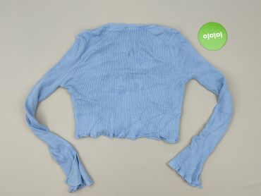 Sweter rozpinany damski marki Cubus w kolorze jasnoniebieskim w białe paski. Sweter ma dekolt w kształcie litery V i jest zapinany na guziki w tym samym odcieniu błękitu. Długie rękawy zakończone s...