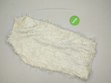 Biały ażurowy bezrękawnik/sweterek damski - Rozmiar: M (metka widoczna na zdjęciu) - Materiał: 100% poliester - Kolor: biały - Dzianina ażurowa z falującym, koronkowym wzorem - Krój: bez rękawów, ...