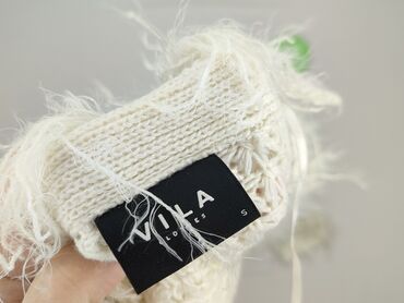 Bez wypełnieniaBiały kardigan damski marki VILA, wykonany z dzianiny o luźnym splocie, charakteryzujący się długim włosiem. Ten unikatowy fason bez rękawów doskonale sprawdzi się jako narzutka na bluzkę lub sukienkę, dodając stylizacji lekkości i oryginalności. Idealny na wiele okazji, od casualowych po bardziej formalne.