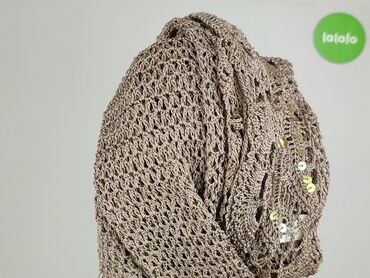 Ażurowy kardigan damski z długim rękawem - Fason: swobodnie opadający, bez zapięcia, delikatnie marszczony przodem - Detale: dekoracyjne wstawki z koronki/siateczki na ramionach i w górnej części ...Kardigan damski marki M&Co. w odcieniu beżowym, wykonany z wiskozy. Charakteryzuje się ażurowym splotem, który dodaje mu lekkości i oryginalności. Zdobiony jest subtelnie rozmieszczonymi cekinami, które mienią się w świetle, nadając całości eleganckiego blasku. Długie rękawy i otwarty fason sprawiają, że kardigan jest wygodny i swobodny, idealny do noszenia na co dzień lub jako uzupełnienie wieczorowej stylizacji. Można go nosić w zestawie z letnimi sukienkami lub prostymi topami, tworząc ciekawe warstwowe kompozycje.