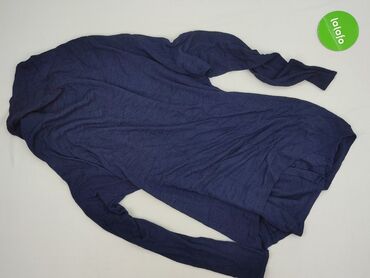 Długi kardigan damski bez zapięcia - Kolor: granatowy - Krój: prosty, swobodny, lekko opadający przód - Długość: za biodra - Rękawy: długie - Dzianina: prążkowana, elastyczna, miękka w dotyku - Wy...