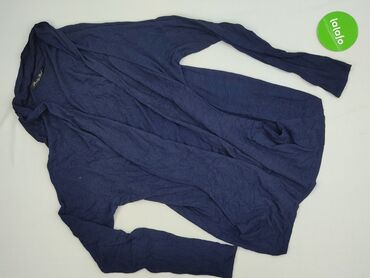 Ażurowy kardigan damski, granatowy - Krój: zapinany na guziki, dekolt w serek (V-neck) - Rękaw: długi - Wzór/dzianina: delikatna, ażurowa struktura na całej powierzchni; elastyczne ściągacze przy ...