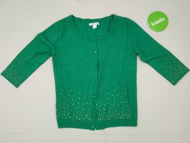 Sweterek/kardigan damski na guziki - Kolor: butelkowa zieleń, melanż - Krój: dopasowany, z głębokim dekoltem V; od linii pod biustem dół i mankiety w wyraźnym, elastycznym prążku; długi rękaw z le...