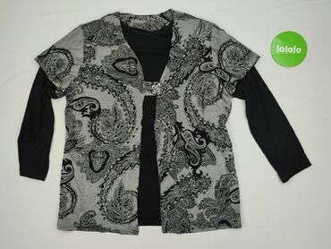 === PART 1: TEXTUAL DESCRIPTION ===Kardigan damski w kolorze szaro-czarnym, ozdobiony wzorem paisley. Posiada długie rękawy i zapięcie na ozdobną sprzączkę. Jego wszechstronny design sprawia, że jest odpowiedni zarówno do codziennych, jak i bardziej eleganckich stylizacji, dodając im charakteru i ciepła. Idealny do noszenia przez cały rok, jako narzutka na chłodniejsze dni lub uzupełnienie wieczorowego stroju.=== PART 2: BULLET LIST OF CHARACTERISTICS ===Rodzaj odzieży: KardiganDługość rękawa: Długi rękawKolor: SzaryKolor: CzarnyWzór: PaisleyZapięcie: SprzączkaRozmiar: 46Dla kogo: KobietyStan: UżywanyTyp: Górna część garderobyStyl: CasualMateriał: TkaninaDekolt: W serekOkazja: Na co dzieńFason: LuźnySezon: Całoroczny