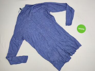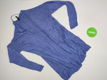 Niebieski kardigan damski z długimi rękawami, wykonany z miękkiego, elastycznego materiału. Charakteryzuje się otwartym przodem bez zapięć i luźnym, opadającym fasonem. Idealny do noszenia na co dz...Stan: