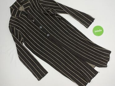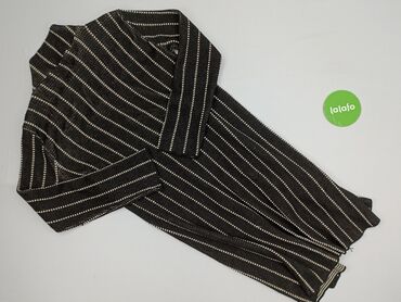 Długi kardigan damski w paski - Kolor: lawendowy fiolet z poziomymi białymi pasami - Krój: długi, otwarty (bez zapięcia), z obniżoną linią ramion - Długość: za kolano - Rękawy: długie, zakończone ...Stan: