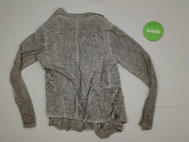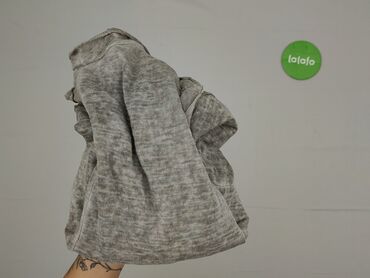 Szary kardigan damski z dzianiny melanżowej - Fason: otwarty sweter bez zapięcia, z wydłużonymi połami z przodu - Dodatki: troczek/sznurek do wiązania z przodu (możliwość ściągnięcia i podkreśleni...