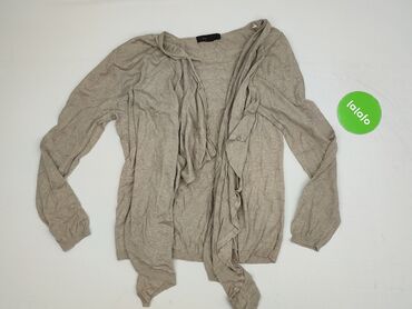 W serekBeżowy kardigan damski z długim rękawem i otwartym przodem, idealny do noszenia na co dzień. Kardigan wykonany z mieszanki wiskozy, poliamidu i akrylu, co zapewnia miękkość i komfort noszenia. Dół i rękawy wykończone delikatnym ściągaczem. Uniwersalny kolor sprawia, że łatwo dopasujesz go do różnych stylizacji, zarówno casualowych, jak i bardziej eleganckich. Charakterystyczny luźny fason z opadającymi klapami nadaje swobodnego wyglądu i pozwala na różnorodne sposoby stylizacji. Doskonały jako narzutka na chłodniejsze dni lub uzupełnienie wiosenno-letnich zestawów. Jest to używany element garderoby w dobrym stanie. Cechy produktu: Rodzaj: Kardigan Długość rękawa: Długi rękaw Zapięcie: Otwarte, bez zapięcia Fason: Luźny, z opadającymi klapami Wykończenie: Ściągacze na rękawach i na dole Kolor: Beżowy, jednolity Styl: Casual, uniwersalny