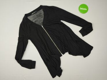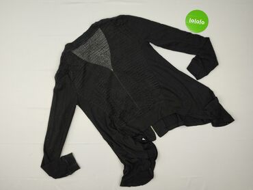 Czarny, lekki kardigan damski bez zapięcia - Fason: otwarty sweter z szerokim, wywijanym kołnierzem/szalowym kołnierzem; długie rękawy, ściągacze przy mankietach i na dole. - Materiał (z metki): 50...