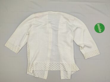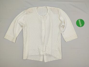 Ażurowy, lekki kardigan damski w kolorze białym/ecru. - Zapięcie na przodzie: rząd okrągłych, półprzezroczystych guzików. - Dekolt w kształcie litery V. - Długie rękawy. - Miękka, przewiewna dz...