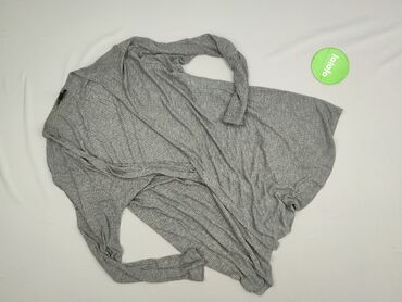 Sweter/kardigan AMISU, rozmiar XL - Fason: lekki kardigan z otwartym przodem (bez zapięcia), dłuższy przód z miękko układającymi się połami - Rękaw: długi - Wzór/kolor: melanż szaro‑czarny w pozio...