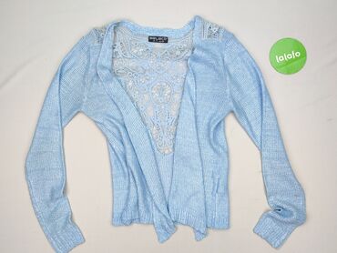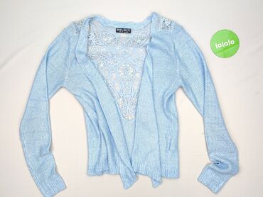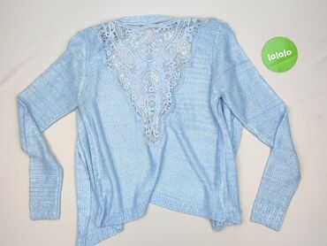 W serekLekki, błękitny kardigan damski z długim rękawem. Dekolt w kształcie litery V, a brzeg ozdobiony delikatną koronką, która tworzy również ozdobny wzór na plecach. Długie rękawy zakończone są ściągaczem. Materiał o drobnym splocie, miękki i przyjemny w dotyku. Idealny na co dzień, do pracy czy na spotkania towarzyskie. Ubranie jest w rozmiarze europejskim 40.
