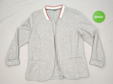 Kardigan damski N. EVERY DAY, rozmiar M/L - Fason: klasyczny kardigan zapinany na guziki - Kolorystyka: cieniowanie szarości od jasnej u góry po ciemny grafit u dołu; w części środkowej poziome pr...
