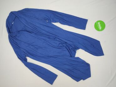 Niebieski kardigan damski z długimi rękawami, wykonany z miękkiego, elastycznego materiału. Charakteryzuje się otwartym przodem bez zapięć i luźnym, opadającym fasonem. Idealny do noszenia na co dz...