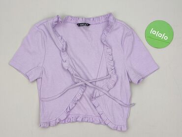 Top/kardigan SHEIN – prążkowany, zapinany na guziki - Kolor: jasny fiolet (lila) - Krój: krótki (crop), dopasowany, z falującym wykończeniem dołu i rękawów - Zapięcie: listwa z przodu na 4 guziki ...