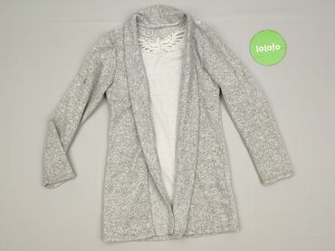 Szary kardigan damski bez zapięcia - Krój: otwarty, swobodnie opadający przód - Rękaw: długi - Kolor: jasny szary melanż - Rozmiar: S (na metce) - Materiał: miękka, elastyczna dzianina (przyjemna ...