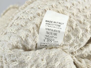 Ażurowy kardigan damski Clu Chè - Kolor: beżowy/piaskowy - Rozmiar z metki: M - Krój: krótki, sięga do talii; rękawy długie - Splot: ażurowy, wyraźna faktura z poziomymi pasami - Dekolt: w serek z...