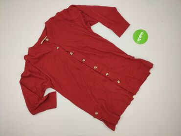 Czerwony damski kardigan/bluza zapinana na guziki - Krój: luźny, prosta linia, krótkie rękawy - Dekolt: w kształcie litery V - Zapięcie: rząd małych guzików z przodu - Długość: do bioder; po bokac...