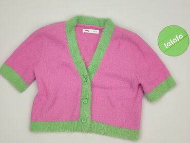 Różowy kardigan damski Sinsay - Rozmiar: XS (z metki) - Krój: krótki, lekko crop - Zapięcie: 3 guziki z przodu w kolorze różowym - Dekolt: głęboki V-neck - Rękaw: długi - Materiał: miękki, puszyst...