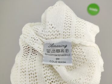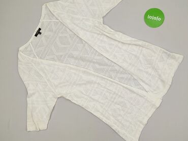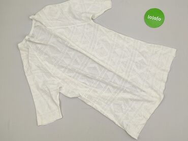 Biała ażurowa narzutka/top marki Deezee (rozmiar M) - Krój: krótki, otwarty przód bez zapięcia - Rękawy: krótkie - Detale: szerokie wstawki z koronki/siatki z dekoracyjnym, okrągłym wzorem z przod...