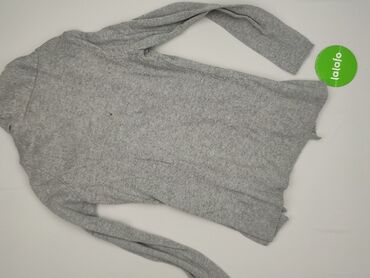 Szary kardigan Orsay – damski, rozmiar S. - Fason: dłuższy, bez zapięcia, z szeroką listwą przy dekolcie - Rękawy: długie - Dzianina: miękka, melanżowa przędza z subtelną, srebrzystą nitką nadając...