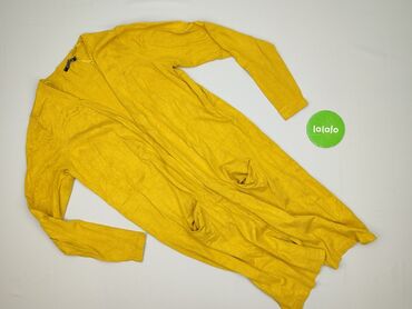 Sweter rozpinany damski w odcieniu musztardowym, wykonany z dzianiny o luźnym splocie. Posiada długie rękawy i otwarty przód, co sprawia, że jest idealny do noszenia na co dzień, dodając stylizacji...Stan: