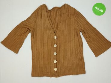 Damski kardigan zapinany na guziki - Kolor: ciemny brąz/czekoladowy - Fason: klasyczny, dopasowany, dekolt w kształcie litery V - Zapięcie: rząd małych guzików z przodu (ok. 6 szt.) - Rękawy: dług...Stan: