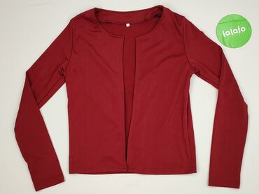 Czerwony damski kardigan/bluza zapinana na guziki - Krój: luźny, prosta linia, krótkie rękawy - Dekolt: w kształcie litery V - Zapięcie: rząd małych guzików z przodu - Długość: do bioder; po bokac...
