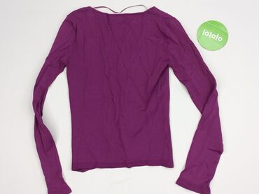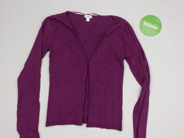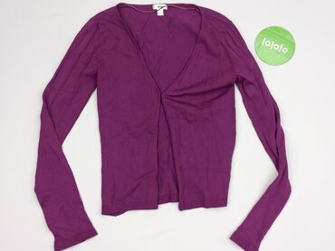 Fioletowy kardigan damski wykonany w 100% z akrylu. Charakteryzuje się unikalnymi, ozdobnymi aplikacjami na ramionach, które dodają mu elegancji. Długie rękawy i luźny krój zapewniają komfort nosze...Stan: