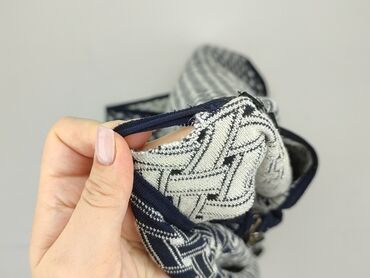 - Wzór: gęsty geometryczny deseń w odcieniach granatu, bieli i szarości