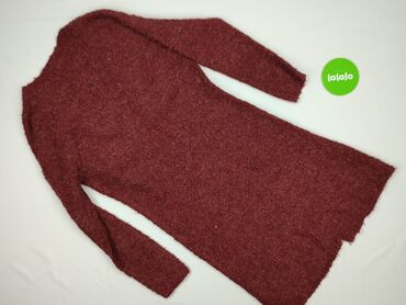 Sweter/kardigan damski, bordowy - Fason: dłuższy kardigan bez zapięcia, z szerokim kołnierzem szalowym - Materiał: dzianina o wyraźnym, pionowym prążkowaniu; elastyczna, miękka w dotyku - Rękawy: ...