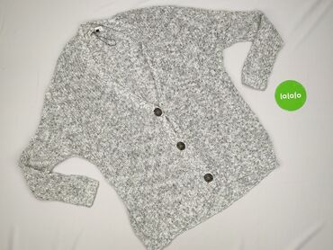 Sweter F&F damski, rozmiar 16 (metka). - Kolor: jasnoszary melanż. - Materiał: 100% akryl (zgodnie z metką). - Fason: kardigan bez zapięcia. - Szeroki, odwijany kołnierz w grubszy splot, zapina...