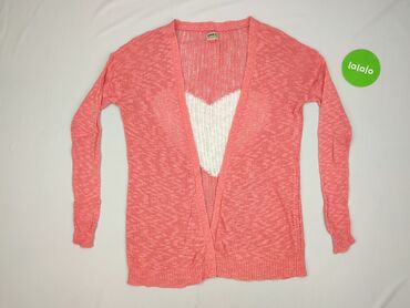 Różowy kardigan damski, rozmiar S - Lekki, miękki dzianinowy materiał o melanżowej strukturze (róż z jasnymi przetarciami). - Fason otwarty bez zapięcia, długie rękawy. - Długość za biodra, luźno ...