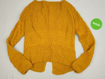 Sweter kardigan damski – musztardowy - Fason: luźny, otwarty kardigan bez zapięcia, dłuższy krój, obniżona linia ramion - Dzianina: gruby, mięsisty splot o wyraźnej fakturze; rękawy i wykończenia ...
