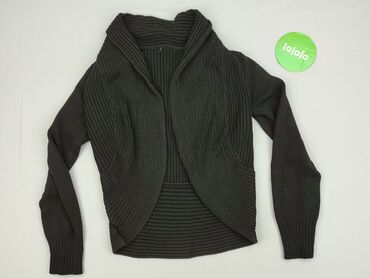 Czarny, lekki kardigan damski bez zapięcia - Fason: otwarty sweter z szerokim, wywijanym kołnierzem/szalowym kołnierzem; długie rękawy, ściągacze przy mankietach i na dole. - Materiał (z metki): 50...