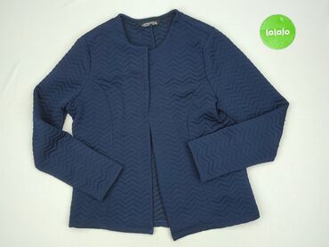Damski żakiet/kardigan bez zapięcia - Kolor: granatowy - Rozmiar z metki: XL - Krój: prosty, otwarty przód bez guzików/zamek; lekko wydłużony - Rękawy: 3/4 z podwinięciem - Kieszenie: dwie wpuszcz...