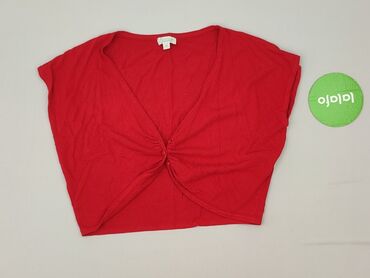 Czerwony damski kardigan/bluza zapinana na guziki - Krój: luźny, prosta linia, krótkie rękawy - Dekolt: w kształcie litery V - Zapięcie: rząd małych guzików z przodu - Długość: do bioder; po bokac...