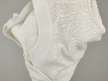 Biała damska narzutka/cardigan bez zapięcia - Kolor: śmietankowa biel - Krój: asymetryczny przód z zachodzącymi na siebie połami; wydłużone, szpiczaste boki - Rękawy: długie - Dekolt: lekko w kszt...Stan: