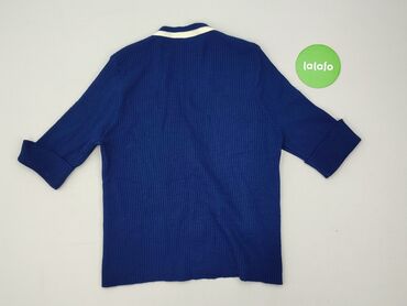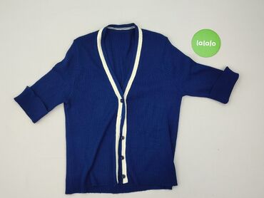 Ażurowy kardigan damski, granatowy - Krój: zapinany na guziki, dekolt w serek (V-neck) - Rękaw: długi - Wzór/dzianina: delikatna, ażurowa struktura na całej powierzchni; elastyczne ściągacze przy ...